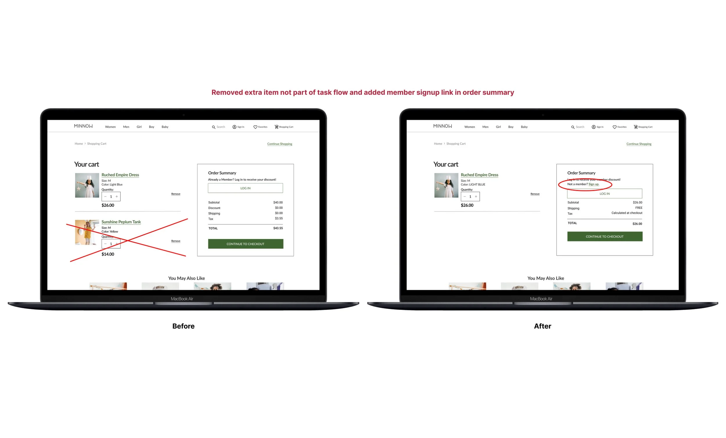 Through an iterative design process, I designed a responsive website for Minnow that provides users the ability to easily search for items and have a seamless checkout experience.