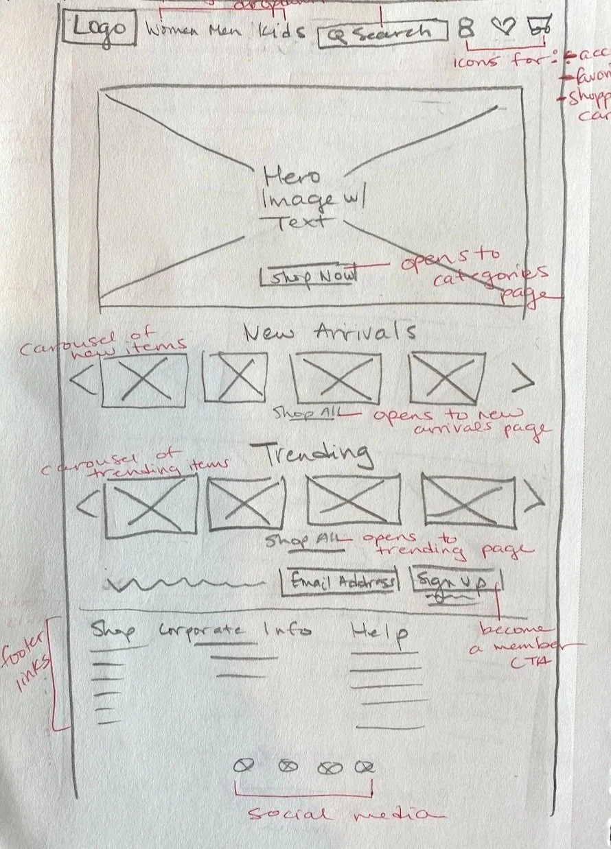 I looked at direct and indirect competitors in the retail industry. Additionally, I scheduled user interviews to learn about what motivates people when they are shopping online.